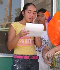 | Oldest daughter Cinthia reads a note of thanks to the D'Aoust family and to Build A Miracle |