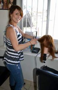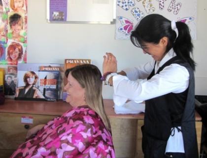 teacher instructs them in hair cutting, coloring, perming,