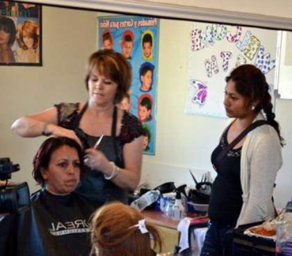 Instructor/stylist Beth Sczempka (center)spearheads the effort at theEl Florido community Beauty School